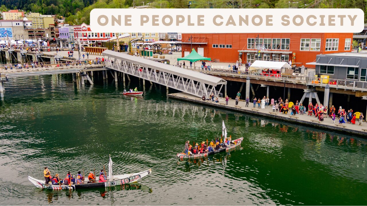 The One People Canoe Society is dedicated to reviving and celebrating the traditional canoe culture of Southeast Alaska’s Indigenous peoples. Founded to reconnect communities with their roots, the society organizes multi-day canoe journeys through the waters of Southeast Alaska, bringing together paddlers from communities throughout the region. The society is perhaps best known for leading the ceremonial paddle to Celebration – the biennial festival honoring Tlingit, Haida, and Tsimshian cultures – arriving in Juneau to the sound of drums and traditional songs from people gathered on shore. Beyond the journeys themselves, the society travels throughout Southeast Alaska offering paddle-making workshops keeping traditional craftsmanship alive. For its members, the paddling journeys are more than athletic events – they are deeply personal acts of healing, remembrance, and kinship that reconnect participants to their ancestors, their ecosystems, and one another.