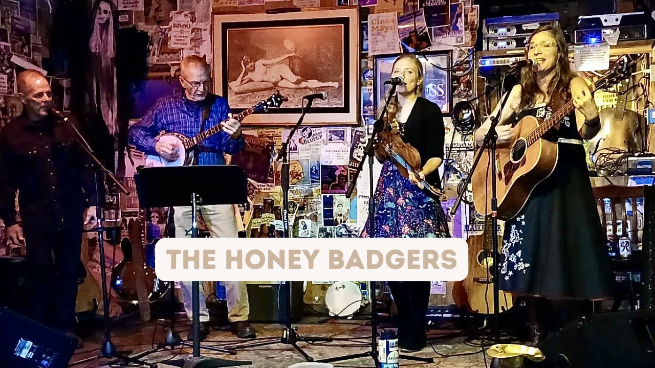 Harmonies and fiddle, sweet as honey. Bad-ass banjo and harmonica rocking the house. It’s the Honey Badgers! Featuring: Heather Parker, Wailin’ Dale Bradenburger, Lu Seapy, Russell Sandstrom.